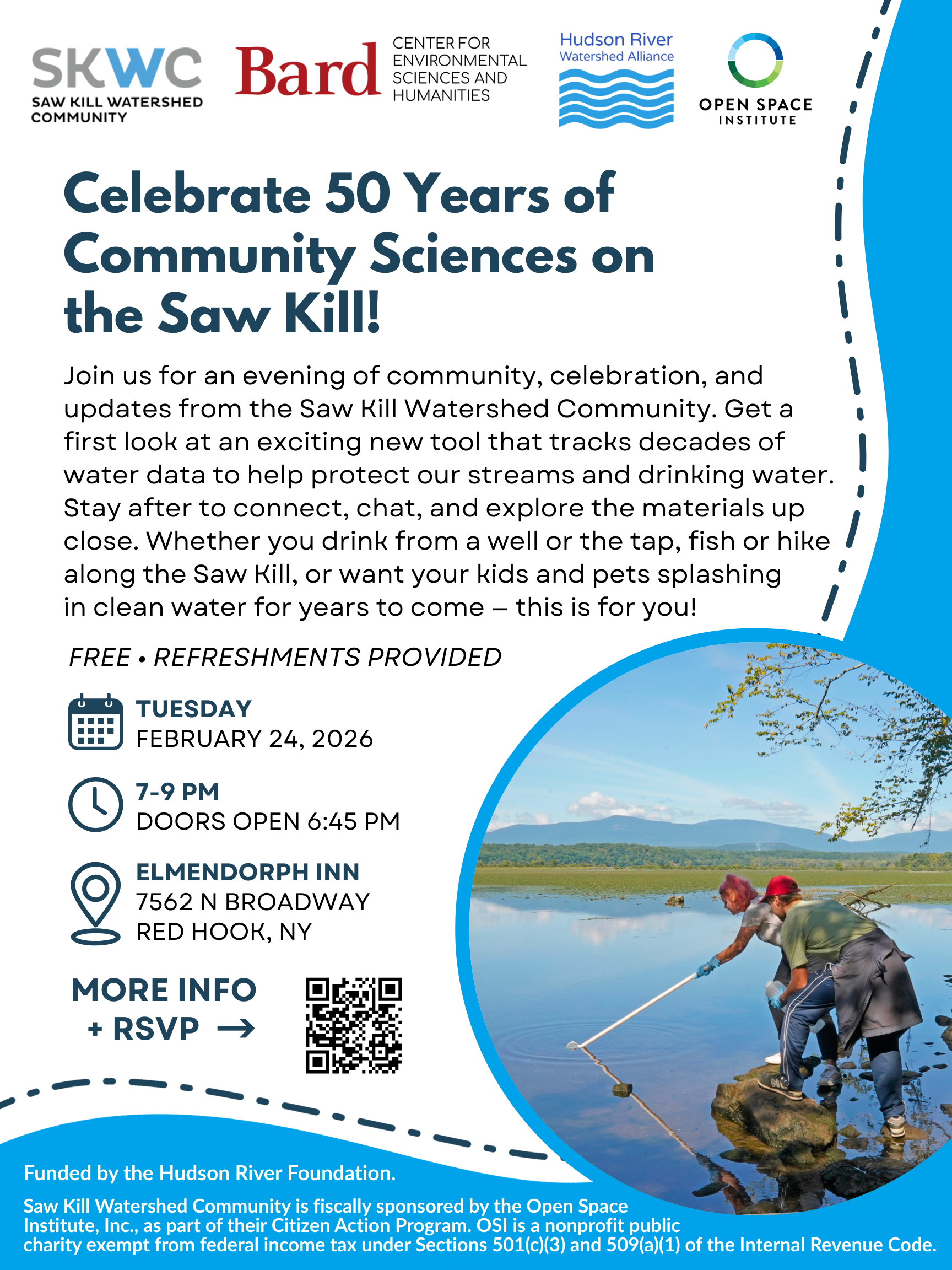 Water quality monitoring on the Saw Kill is managed today by the Center for the Study of Land, Air, and Water, in conjunction with the SKWC and the Bard Community Water Lab. CLICK HERE TO LEARN MORE about the history of water quality monitoring, how sampling works, and how you can participate!